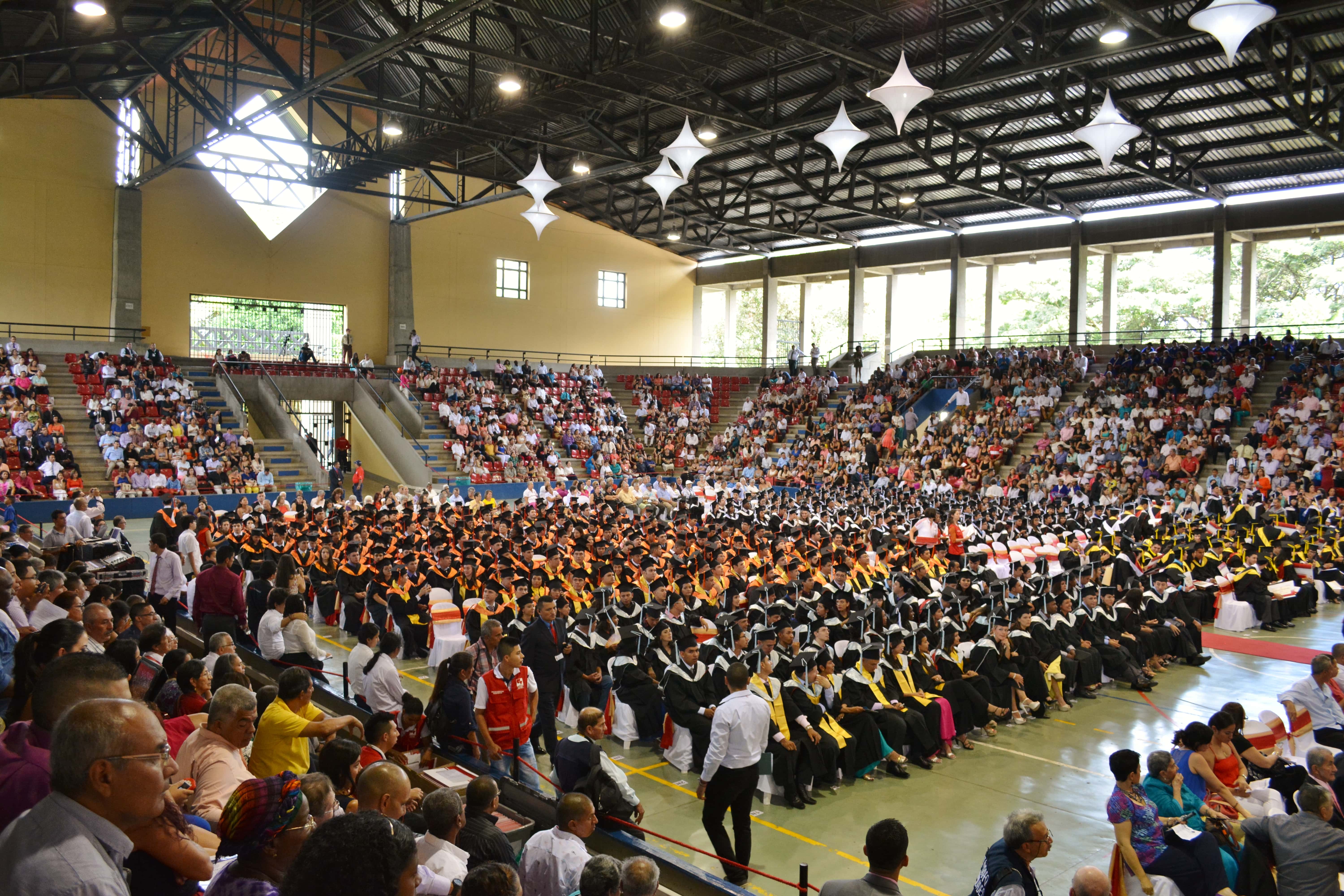 Dentro del coliseo la tribuna está llena, familiares, amigos y conocidos quieren presenciar el último escalón de sus estudiantes para conseguir el título. Una ceremonia solemne les da la bienvenida. El himno nacional, el del Valle del Cauca y el de la Universidad del Valle se cantan impetuosamente. La Vicerrectora Académica Aura Liliana Arias Castillo toma la palabra, y con un sentido discurso resalta lo que significa graduarse de la Universidad del Valle, ubicada en el puesto 48 de las 100 mejores instituciones de educación superior de América Latina, según el ranking de la empresa británica Quacquarelli Symonds, QS, experta en evaluación de instituciones educativas. Arias menciona los componentes que caracterizan a la Universidad: igualdad, democracia, respeto, territorio de paz, acreditación institucional por 10 años, y advierte sobre los retos para los futuros profesionales en un eventual escenario de postconflicto.