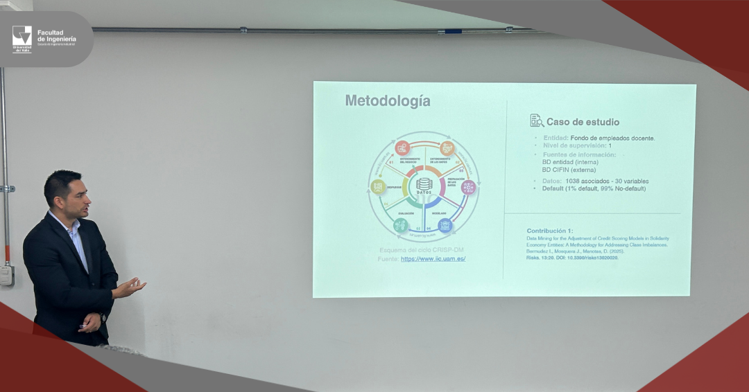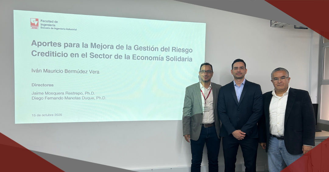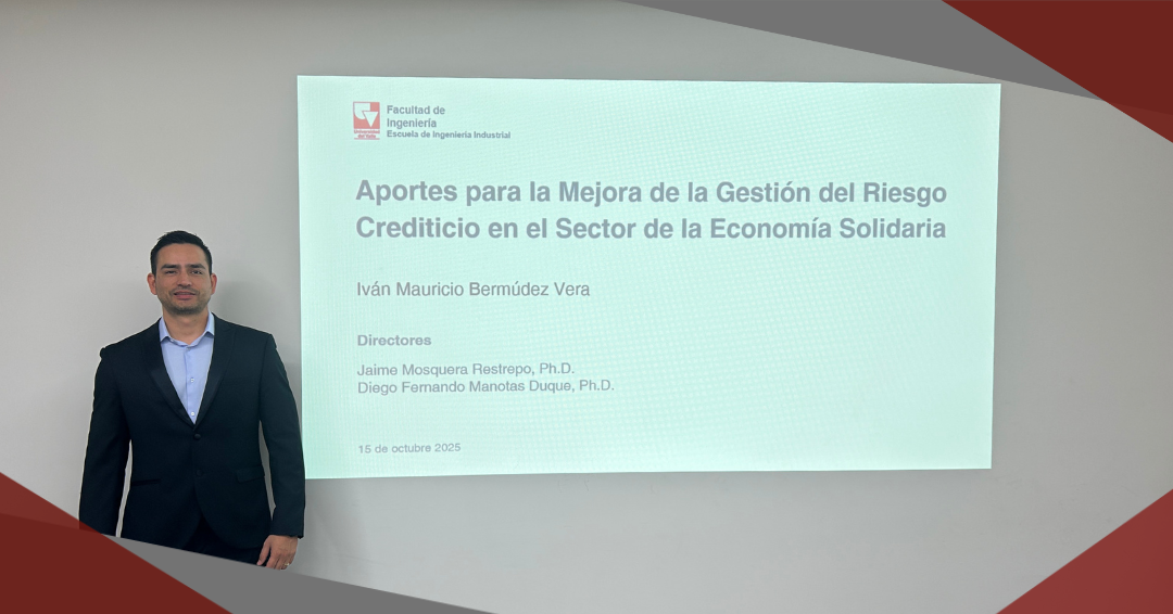 El pasado miércoles 15 de octubre, en sesión presencial llevada a cabo en el salón Multipropósito de la EII, nuestro estudiante Iván Mauricio Bermúdez Vera sustentó su tesis doctoral titulada: “Aportes para la Mejora de la Gestión del Riesgo Crediticio en el Sector de la Economía Solidaria”. Este trabajo se realizó en el marco del proyecto de investigación registrado en la Vicerrectoría de Investigaciones de la Universidad del Valle (CI-21201). Sus directores fueron los profesores: Diego Fernando Manotas Duque, Ph.D., profesor titular de la Escuela de Ingeniería Industrial y Jaime Mosquera Restrepo, Ph.D., profesor de la Escuela de Estadística, ambos de la Universidad del Valle.